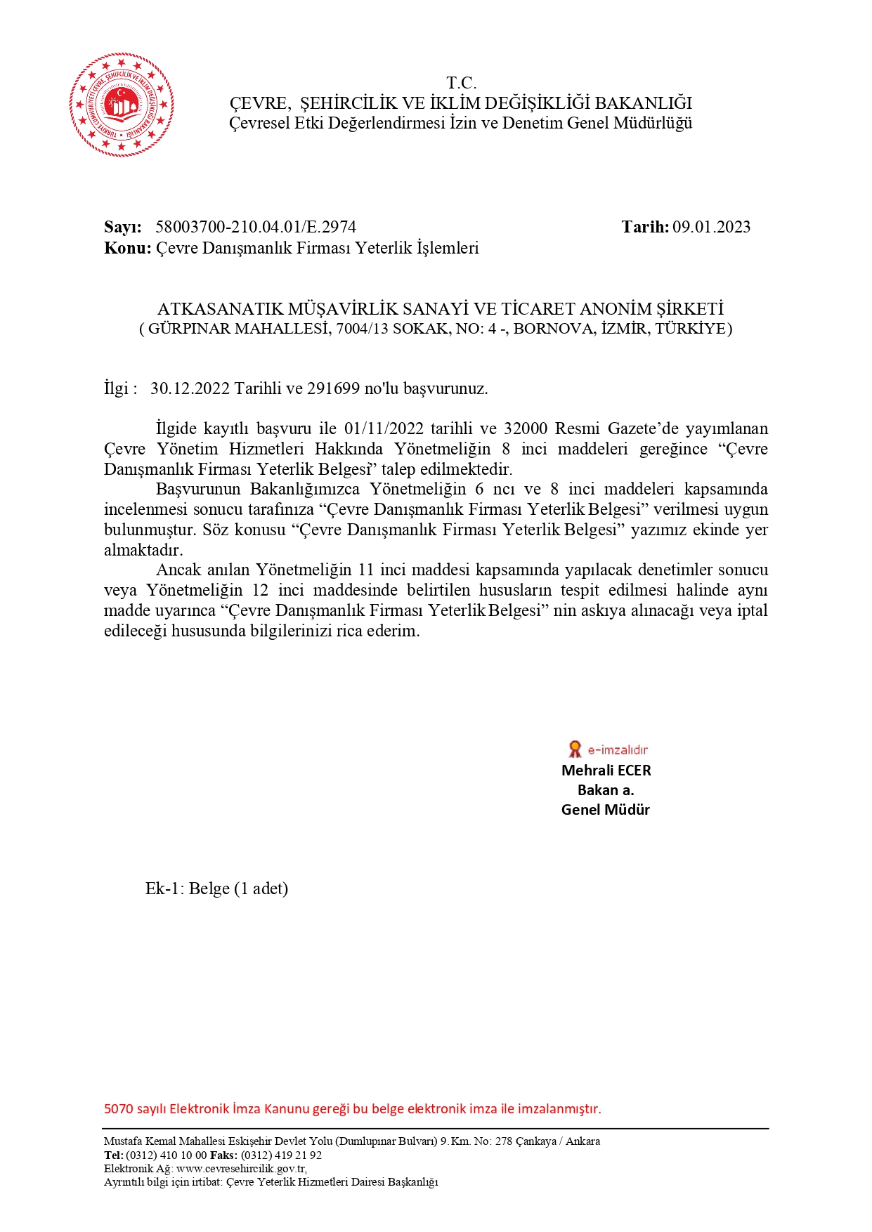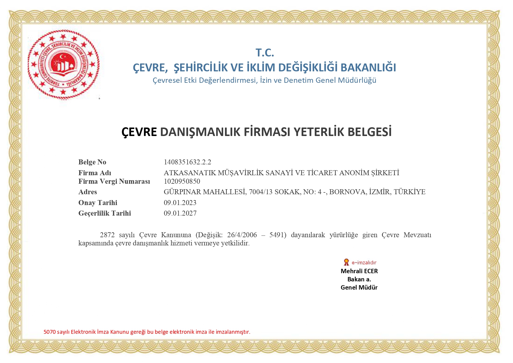 Çevre Danışmanlık Firması Yeterlik Belgesi