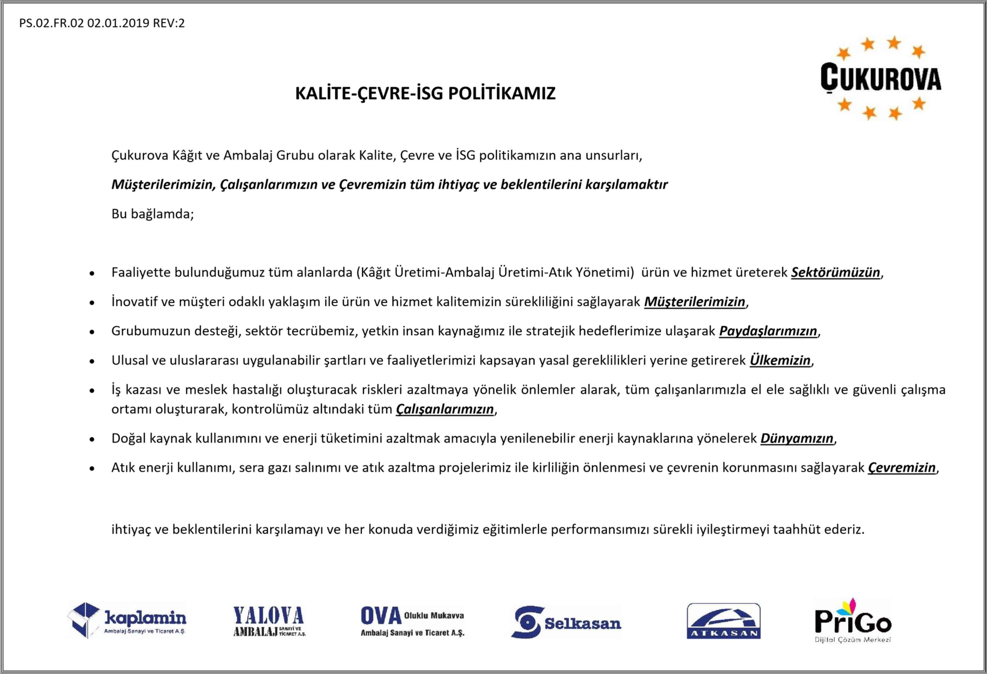 Kalite - Çevre - İSG Politikası