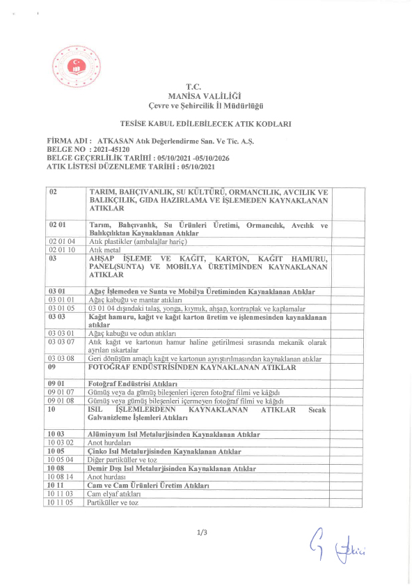 We operate with a certificate in our facilities where the collection and separation of non-hazardous and inert wastes are carried out.